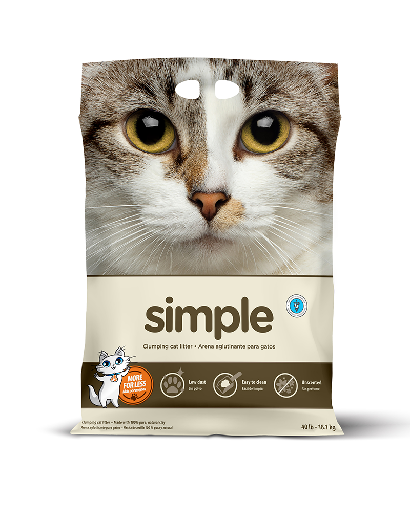 Our Simple clumping litter deserves its name because it contains no fragrances, is dust-free, and relies solely on the natural absorbency of clay to control unpleasant odours. Simply a natural clay transformed into soft granules for your cat’s paws. Nothing more, nothing less!